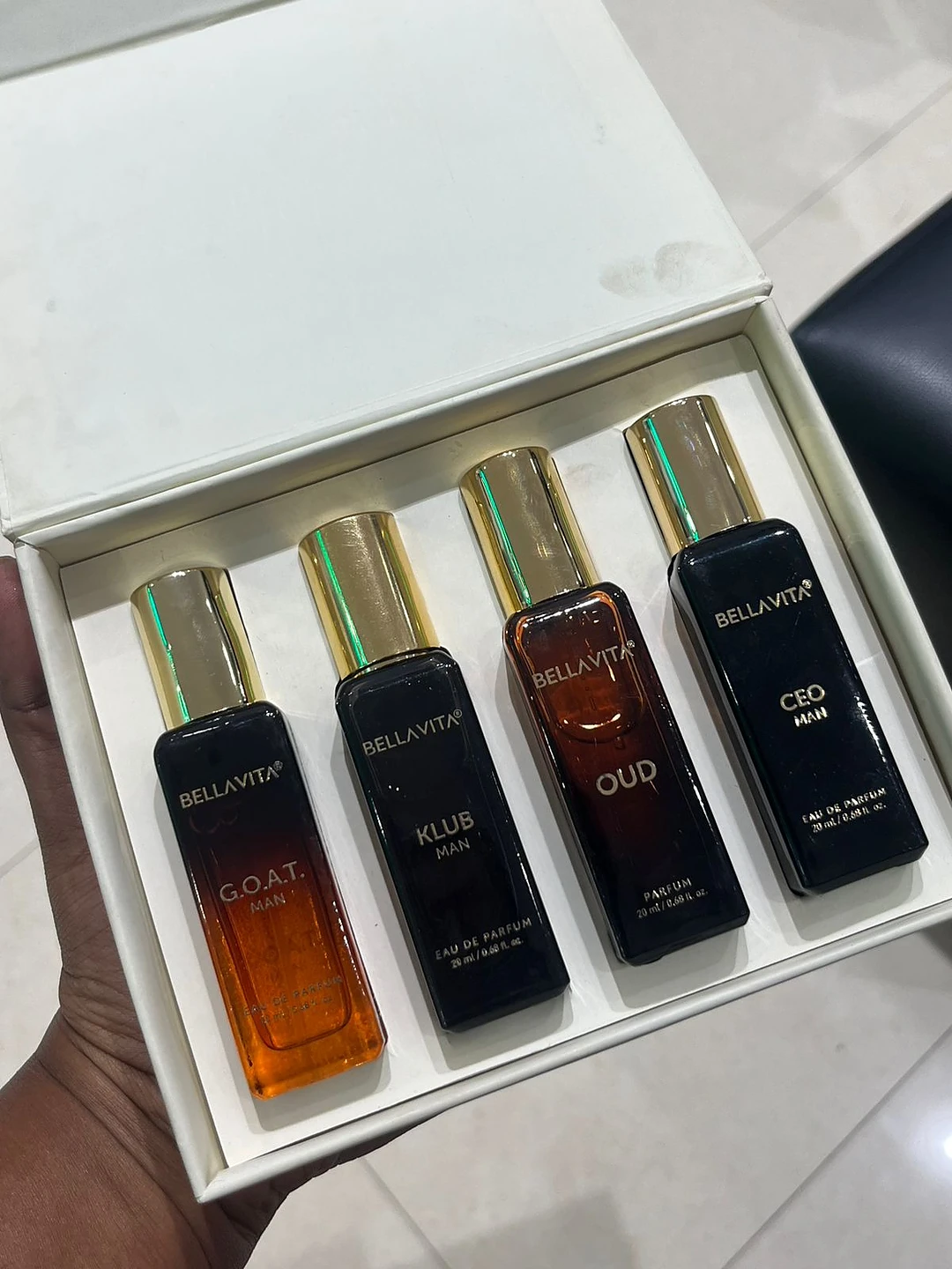 This premium Bellavita men’s fragrance set brings together four signature Eau de Parfums, each crafted to match a different mood and moment. Housed in an elegant white box with gold-accented bottles, it’s designed for men who like to switch up their scent game—from bold and powerful to refined and charismatic.
