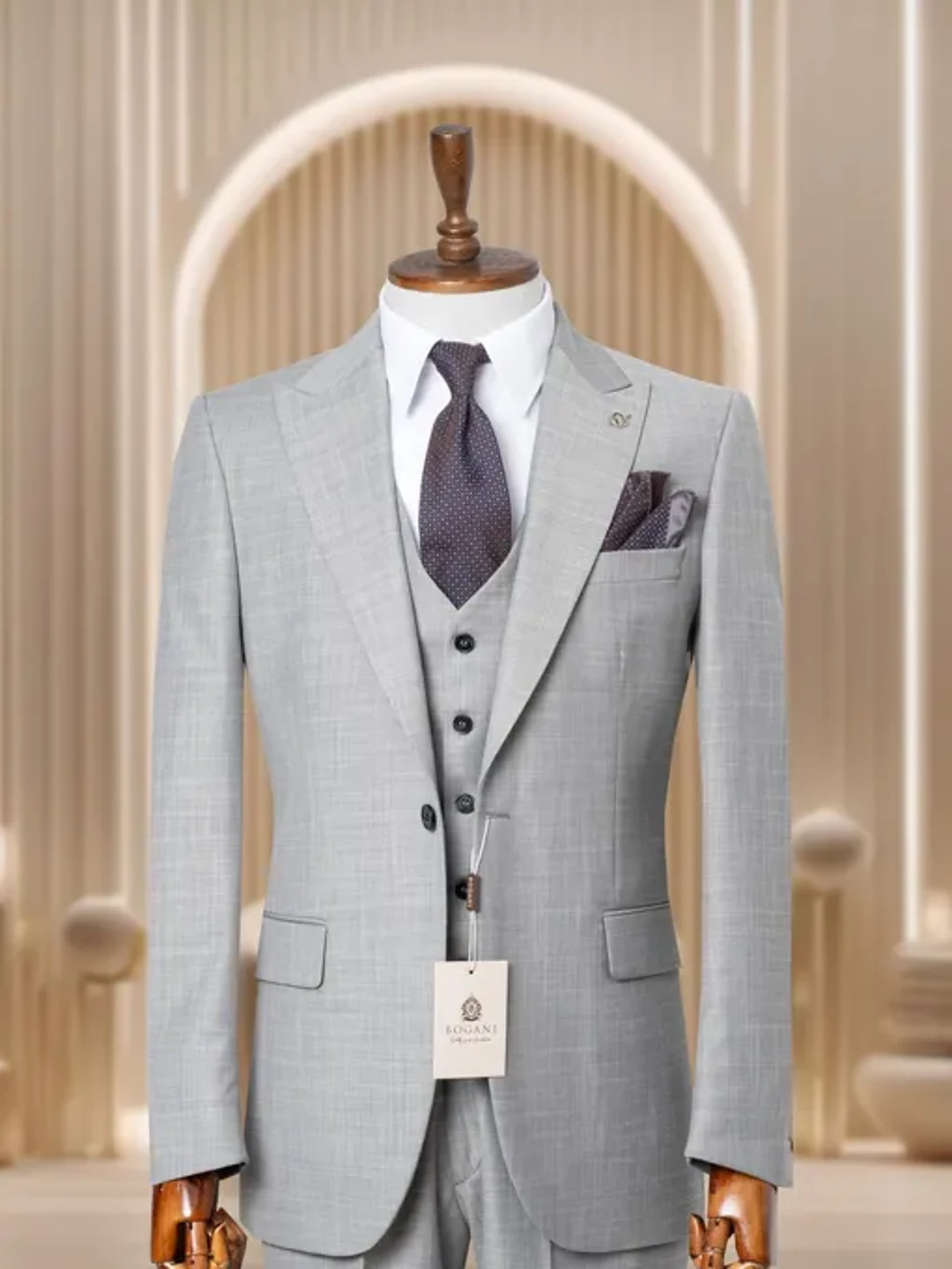 •Slim Fit Peak Lapel, Flap Pocket 3-Piece Suit