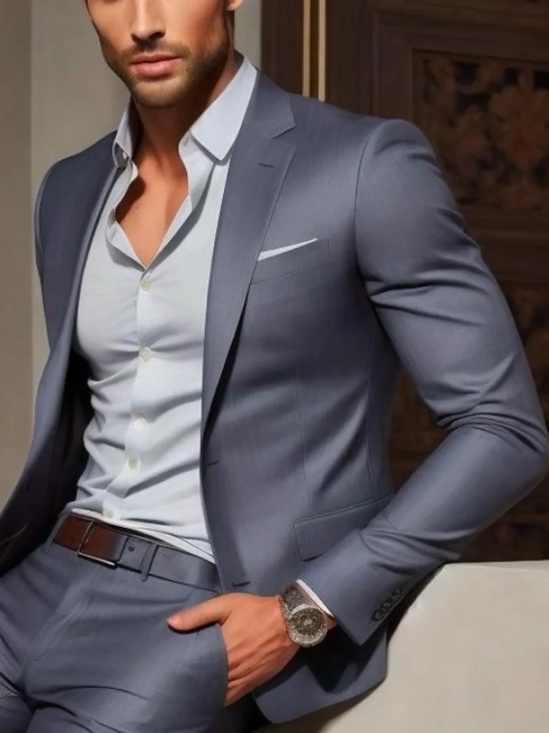 Make a bold yet timeless statement with our Grey 2 -piece suit, crafted for the modern gentleman who values classic tailoring with a contemporary twist. Featuring a 2 Button Suits button closure and a sharp peak lapel, this suit exudes confidence, elegance, and effortless charm.