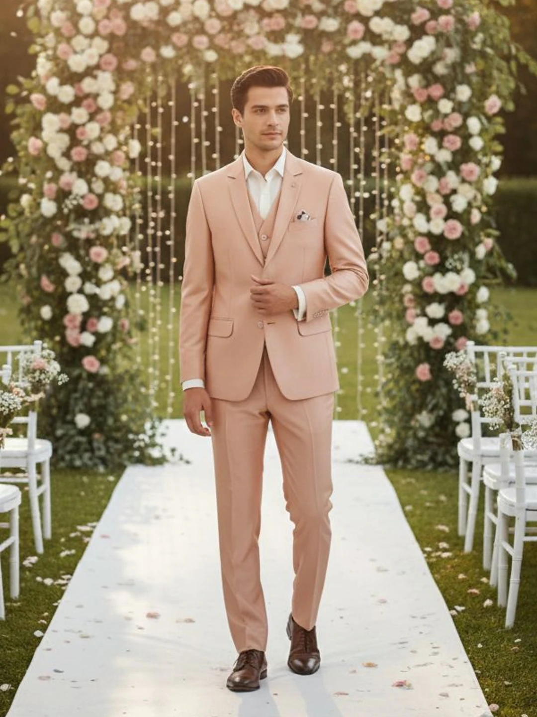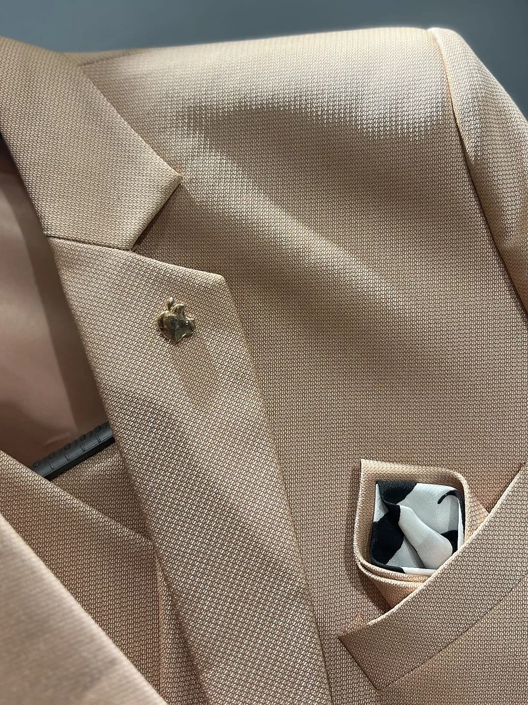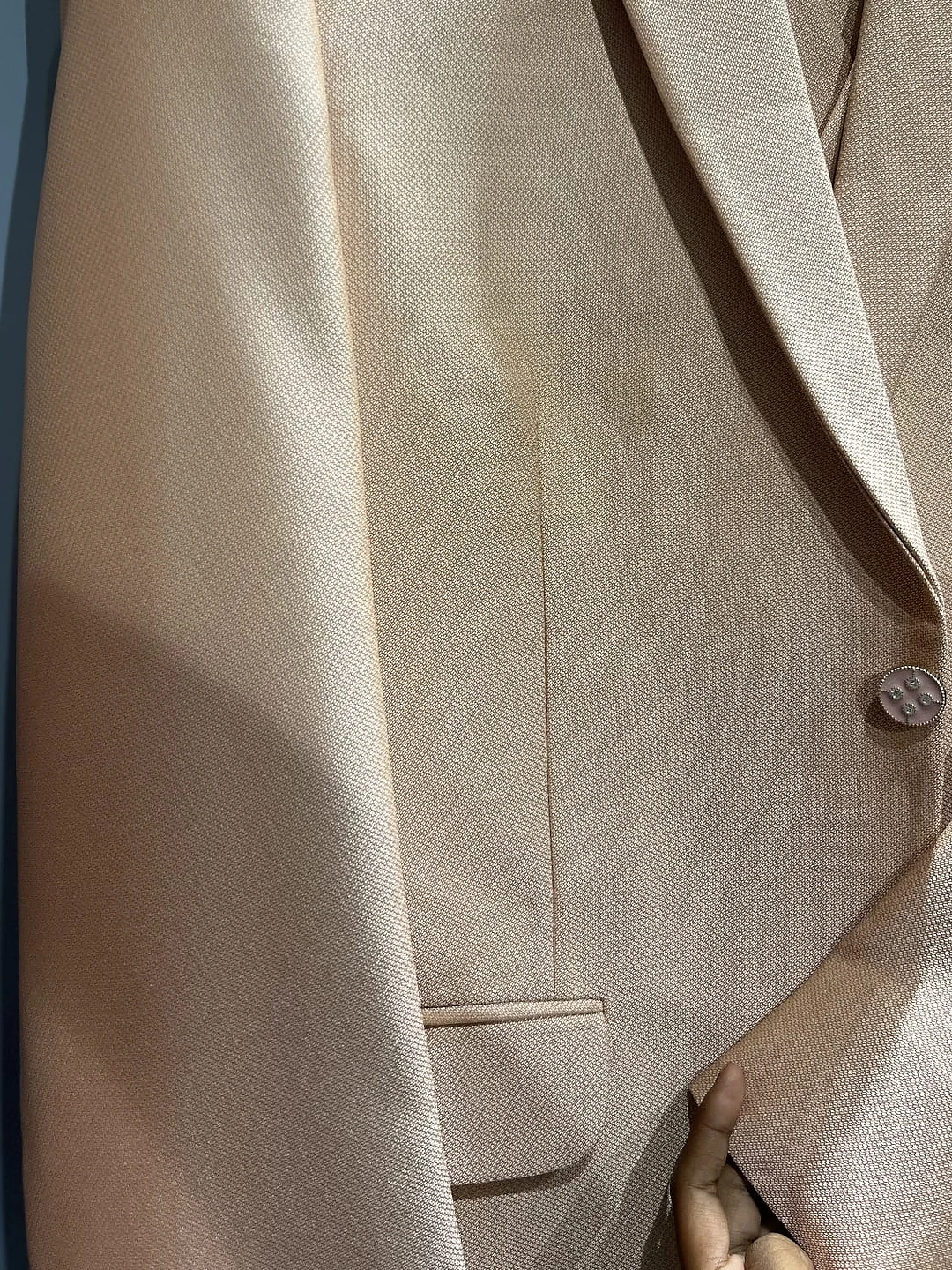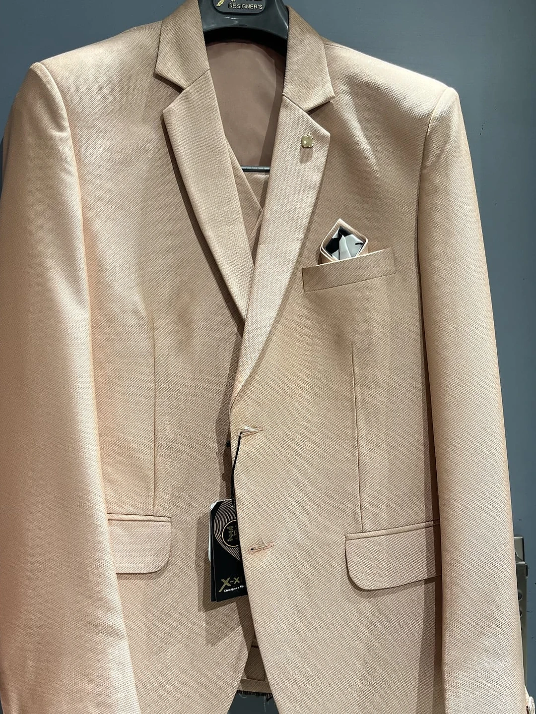 Artfully designed,this peach pink blazer by style play effortlessy your formal attire.its textured pattern adds a subtle yet impactful touch,making it perfect for distinguished occasions.experience the confidence that comes with this meticulously tailored piece.